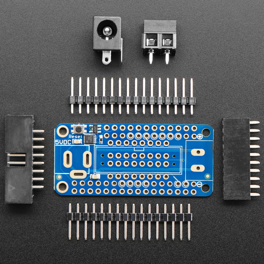 Über die vorhandene Anschlussklemme können Sie externe 5V-Spannungsquellen zur Versorgung Ihrer LED-Panels anschließen. Dieses FeatherWing funktioniert mit allen Adafruit 16x32, 32x32 oder 64x32 RGB Matrizen.