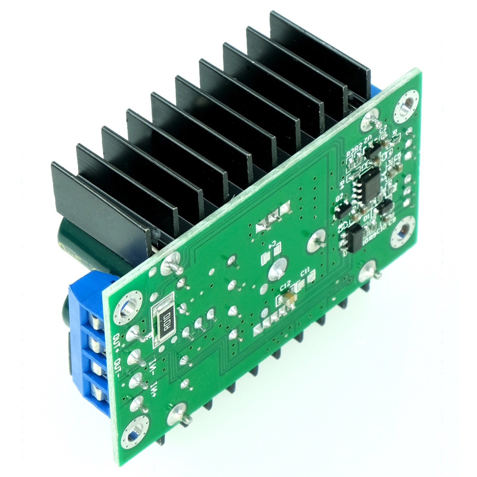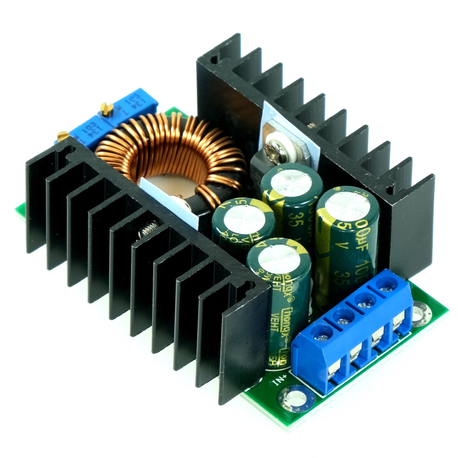Das 300W 8A Spannungsreglermodul verfügt über zwei leistungsfähige Spannungsregler vom Typ XLSEMI XL4016. Beide sind jeweils mit einem großen Kühlkörper ausgestattet, sodass hohe Leistungen bis 300W möglich sind. Die Eingangsspannung von 7 - 40 V wird auf eine per Potentiometer einstellbare Ausgangsspannung zwischen 1 - 35 V reduziert. Mithilfe des zweiten Trimmers lässt sich die Strombegrenzung einstellen.
