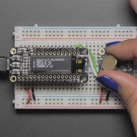 Messen Sie das magnetische Feld mithilfe des Adafruit MLX90393 Breakout Boards. Der MLX90393 Chipsatz ist ein Magnetfeldsensor mit großem Messbereich bietet eine hohe Auflösung von 16-Bit.