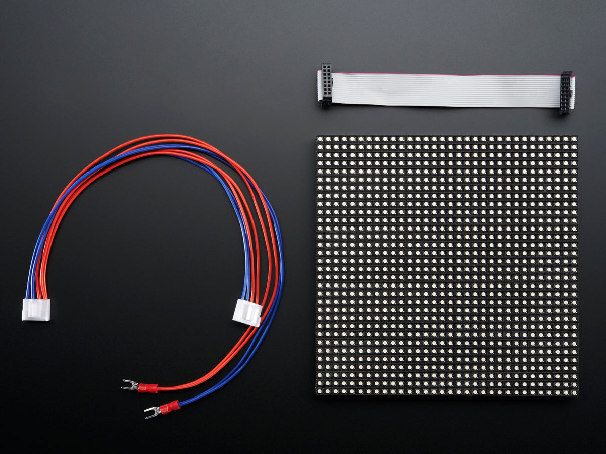 Bringe ein Stück vom Time Square in dein Zuhause mit der 32 x 32 RGB-LED-Matrix von Adafruit. Diese Panels werden üblicherweise genutzt, um Videowände für Animationen, Videoclips und Ähnliches herzustellen. Das Panel verfügt wie das 32x32 RGB LED Matrix Panel mit 6 mm Rastermaß über 1024 helle RGB-LEDs. Bei diesem Display sind die LEDs in einem Raster von 32 x 32 Pixel mit einem Abstand von jeweils 5 mm angeordnet. Auf der Rückseite befindet sich eine Platine mit IDC-Buchsen (1x Input, 1x Output) und 12 16-Bit Register, die die Ansteuerung mit einer Scanrate von 1:16 ermöglichen.