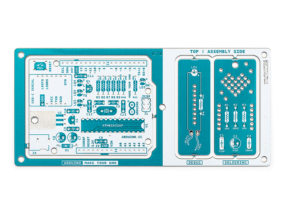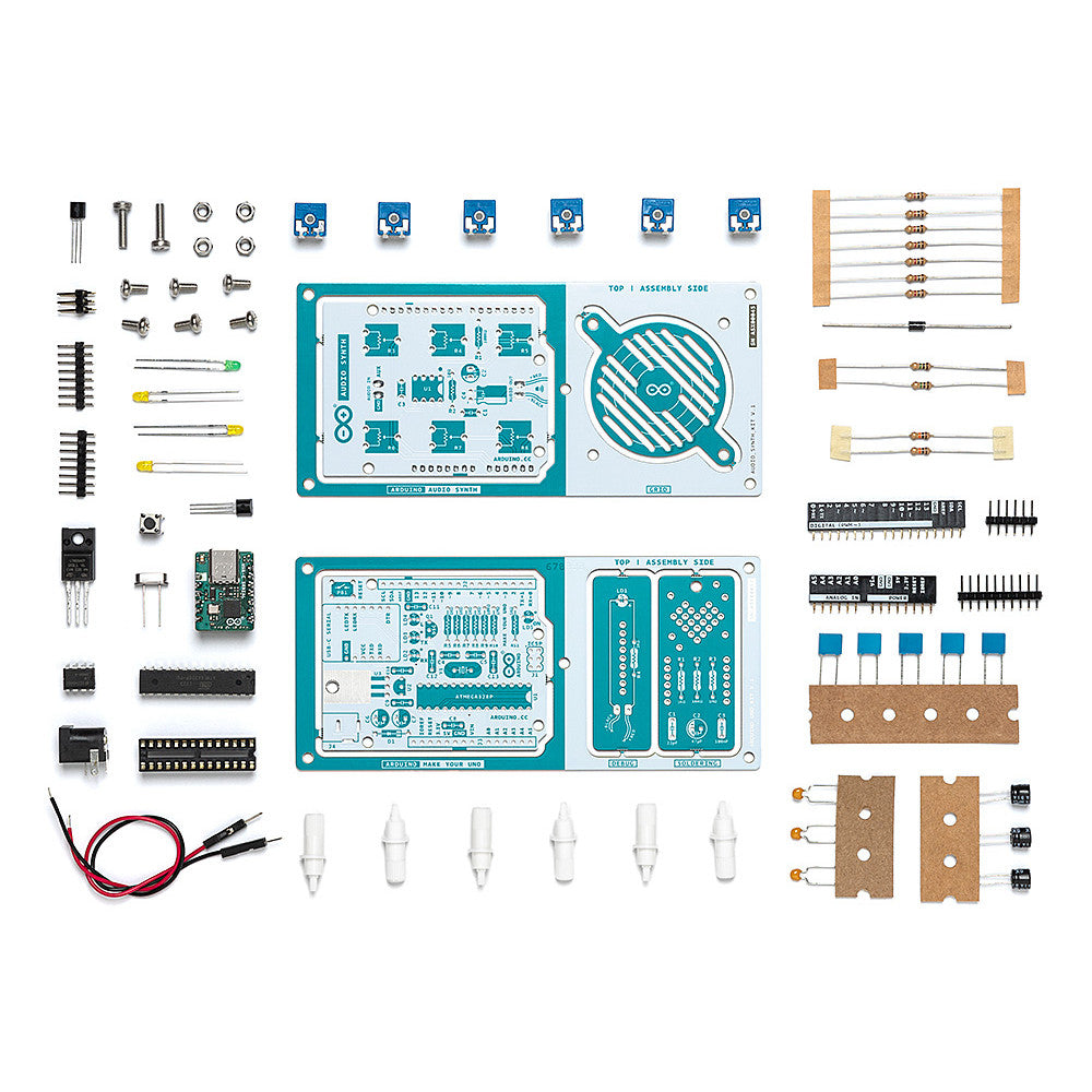 Lerne die Grundlagen der Elektronik, indem du dein Arduino UNO manuell zusammenbaust. Werde vertraut mit dem Löten, indem du jede einzelne Komponente montierst, und entfessle dann deine Kreativität mit dem einzigen Kit, das zu einem Synthesizer wird!