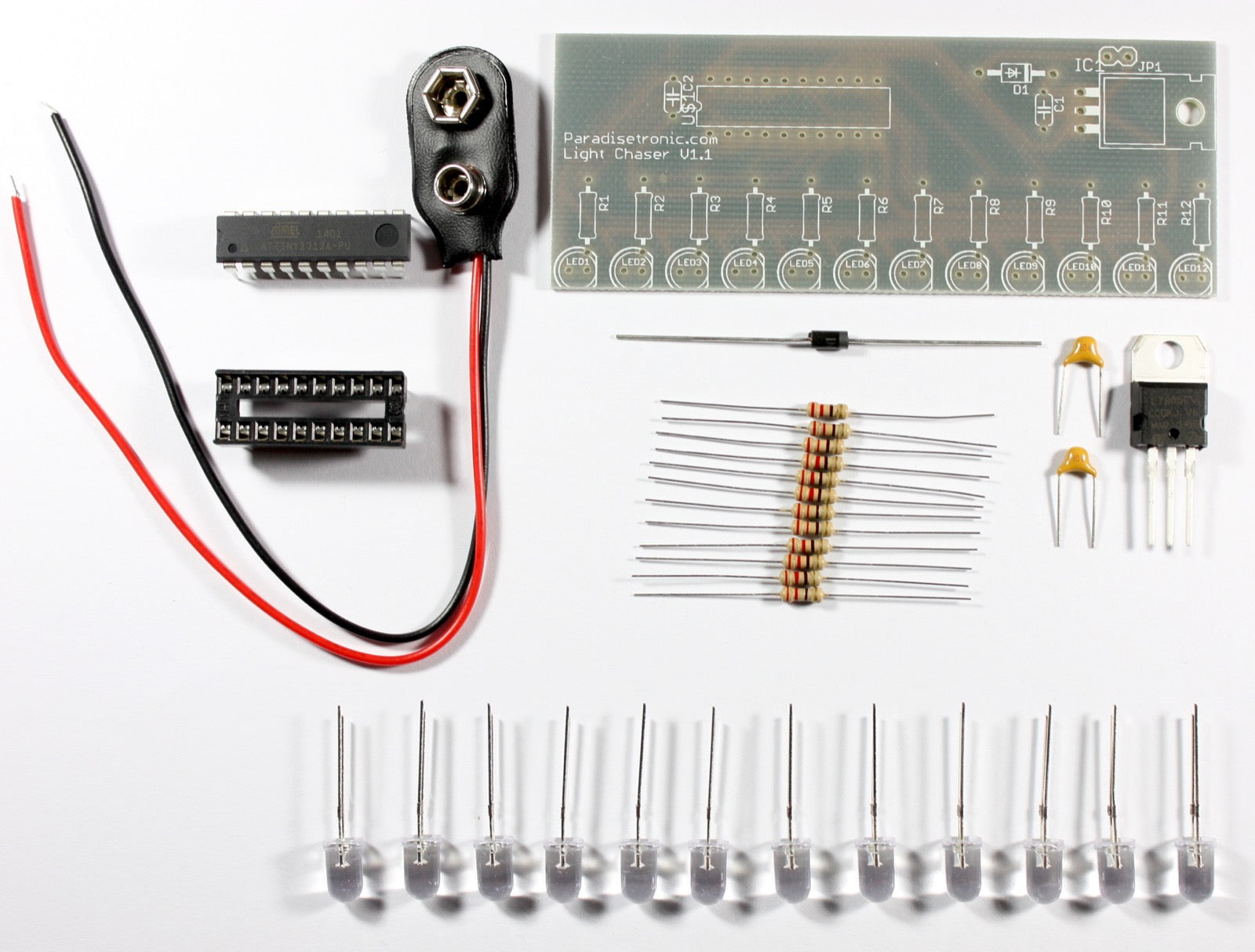 Lauflichtbausatz V1.1 mit 12 superhellen LEDs und Atmel AVR Mikrocontroller