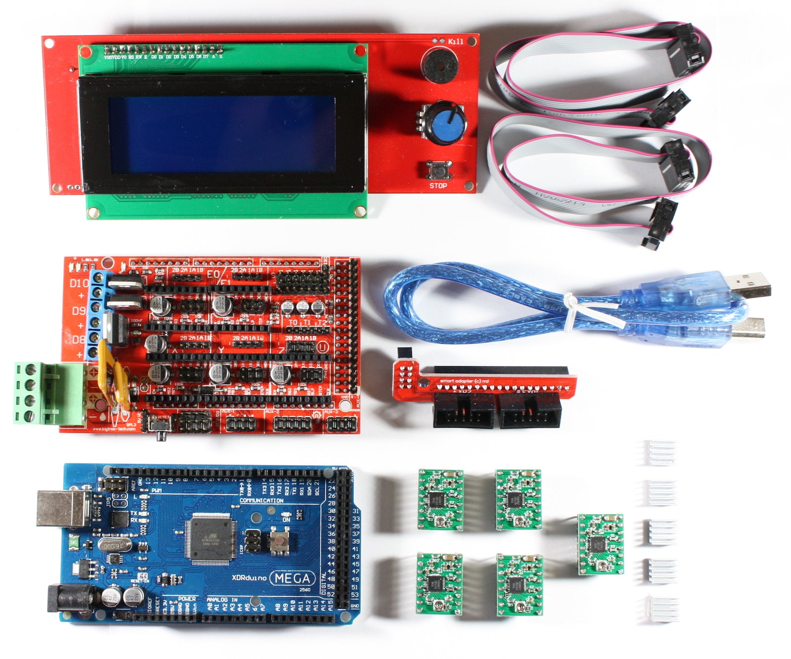 RAMPS 1.4 Set mit Shield, Mega 2560, 5x A4988, 2004 LCD für RepRap 3D Drucker