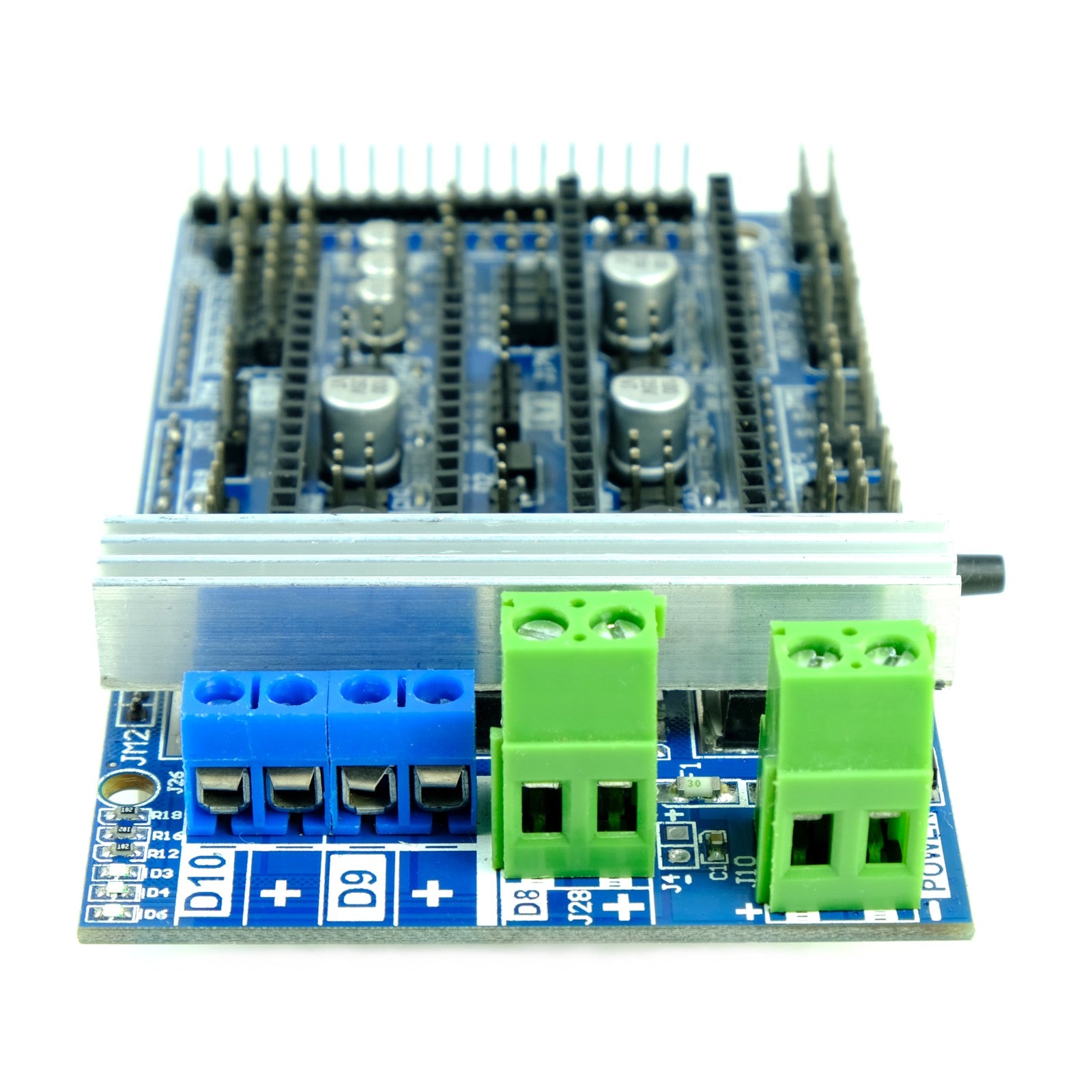 RAMPS steht für RepRap Arduino-compatible MEGA Pololu Shield. Es wurde so konzipiert, dass alle benötigten elektronischen Komponenten für Ihren RepRap 3D Drucker auf diesem Shields zusammengeführt werden können. So lässt sich mit diesem Shield z.B. eine Steuerung mit fünf Schrittmotoren, drei Temperaturfühlern, sechs Endschaltern, einem Heizbett, Lüfter und Extruder realisieren. Es handelt sich hierbei um die verbesserte Version mit Kühlkörper für die MosFETs, die Heizbett und Hotend ansteuern. Darüber hinaus wurde die mechanisch anfälligen Kodensatoren des Vorgängers durch robustere SMD-Varianten ersetzt.